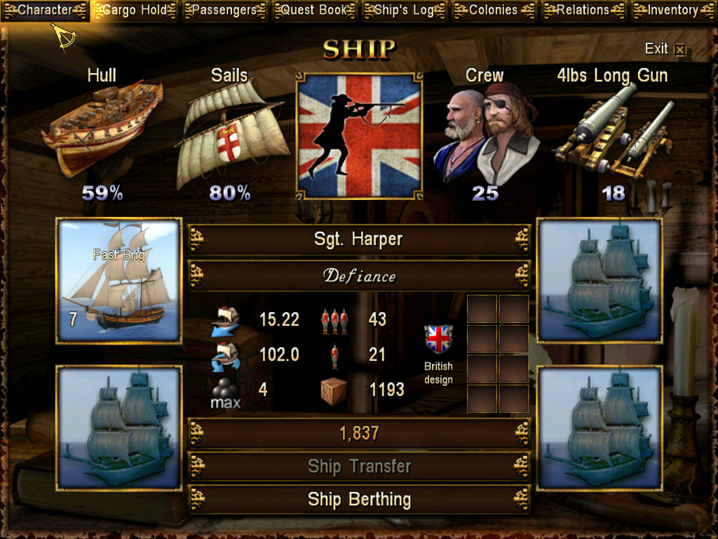 I don't know where a tartane is getting a 15+ speed. "Ships_init.c" lists the speeds for "Tartane1", "Tartane2", "Tartane50" and "Gunboat" as 7.0 for "Realistic" and 10.0 for "Arcade". "TartaneWar" has 9.0 for "Realistic" and 10.0 for "Arcade". None of the national modifiers are anything like 50%.The self-proclaimed fastest brig in the game is still one of the slowest vessels available though. Even Tartanes outrun it with generally a 15-16+ speed listed in the shipyard. Only pure merchant ships appear to be slower, like the light pinnace, light fluyt and their bigger higher tier brethren.