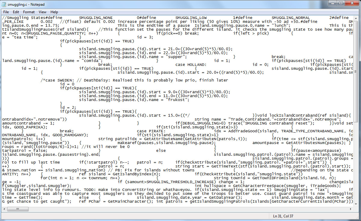 That makes a lot of sense, good call! gonna fix thatSecond problem: you have a 'switch(sti(sisland.smuggling_nation))' block which includes 'case AMERICA' and has the option to later include 'case SWEDEN'. As both of these are "guest nation 1", they both translate to number 6. If you include 'case SWEDEN', it will override the settings for 'case AMERICA' as they're effectively both the same. It's not a problem now as 'case SWEDEN' is commented out, but if you want to implement it, you'll perhaps need to check the current period. Use the settings for Sweden in "Spanish Main", "Golden Age of Piracy" and "Colonial Powers"; and use the settings for America in "Revolutions" and "Napoleonic".