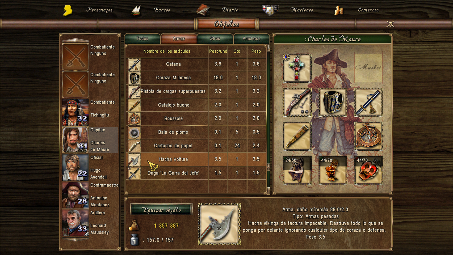 De echo no fue difícil, tenía buenos oficiales y la tripulación estaba bien entrenada antes de ir la isla, voy casi por la recta final del juego y el Flying Heart sin duda es el mejor barco del juego , al menos para mi con sus mejoras, estaré al tanto de seguir revisando, aunque no se de Mods, puedo ir reportando y avisándote de cosas relacionadas con la traducción en sí, errores o cosas no traducidas, así aporto mi granito de arena también. :)