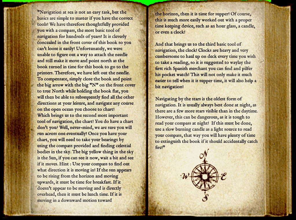 I could very well do some rewriting for the PotC books, though I'd probably have to find a whole new stock book texture. I'm not sure where Thagarr (I think) got the original, though I suppose we could ask him (if indeed it was him, I know he was responsible for some of the early text, at least). Perhaps we could find some stock images that more closely match the PotC interface (I haven't seen it for a very long time).