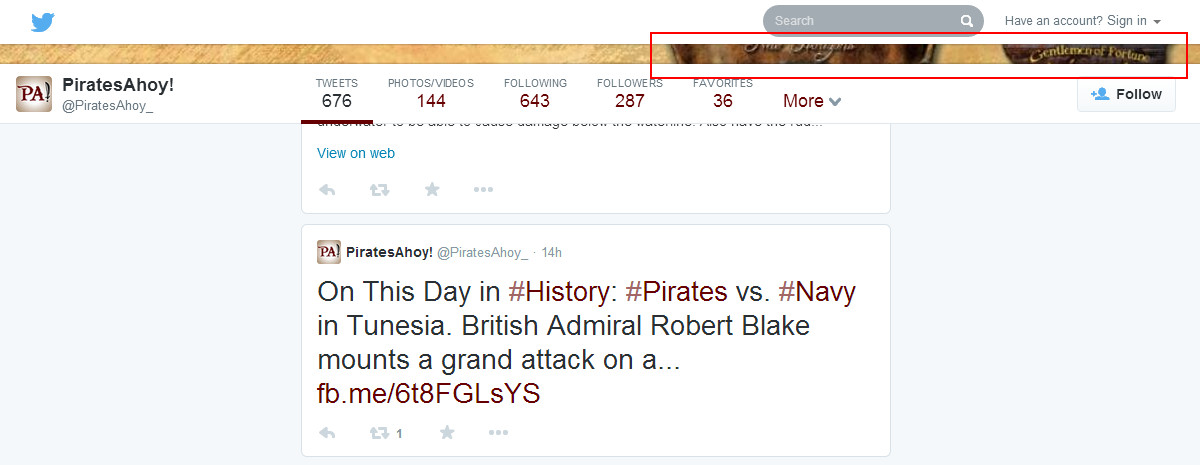 Twitter decided to completely change the layout of the profiles. See here: https://twitter.com/PiratesAhoy_