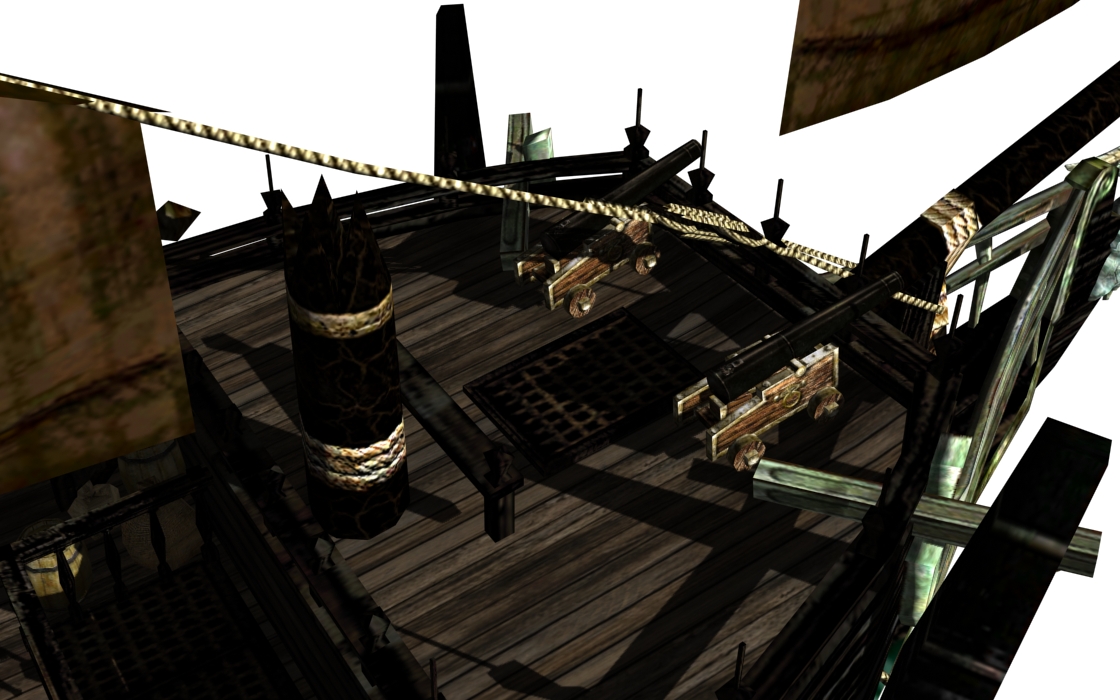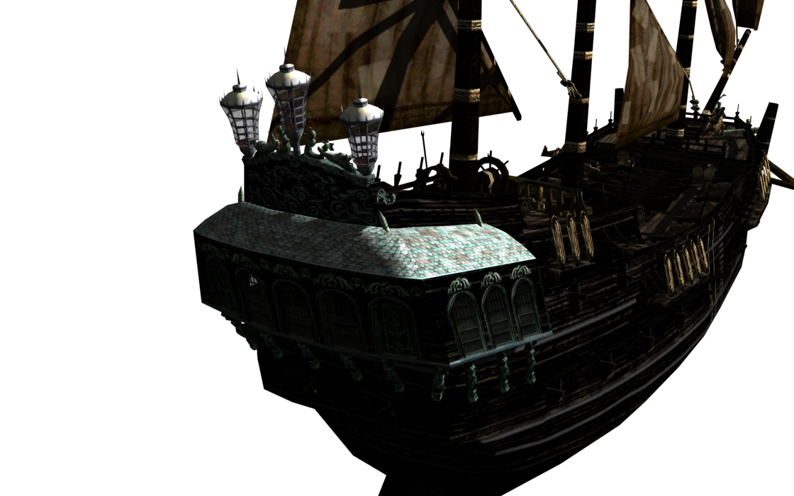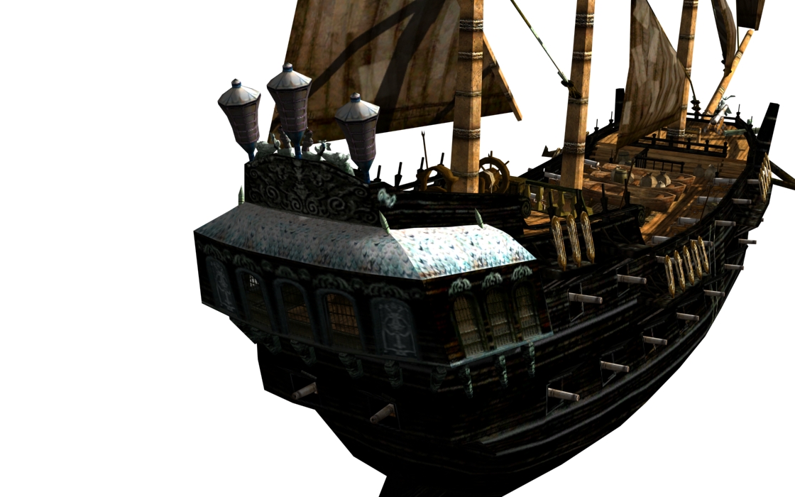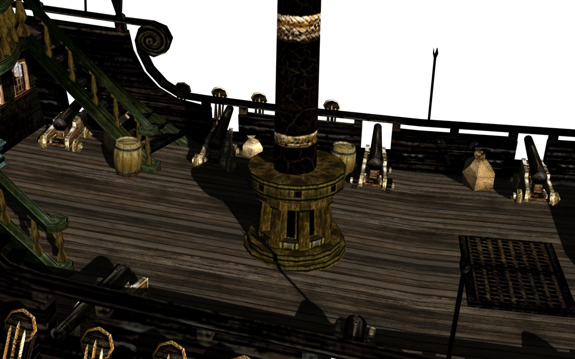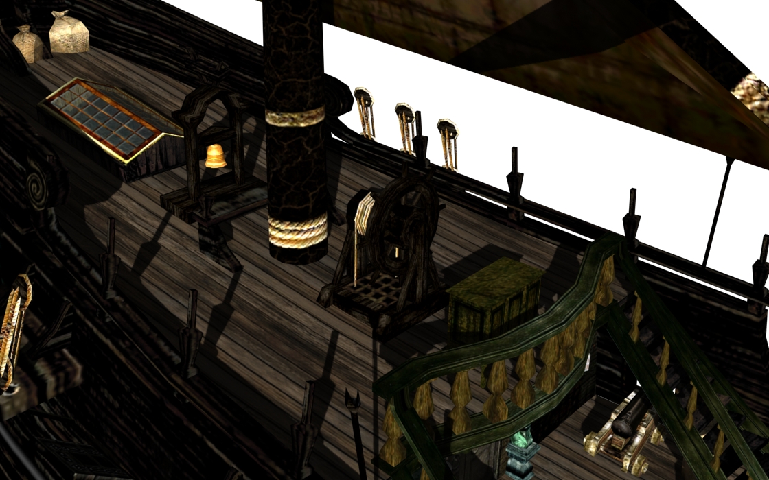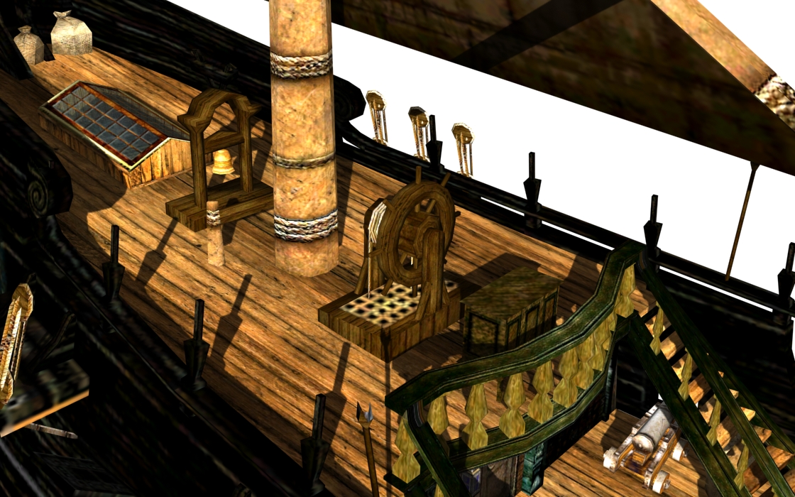 Main cabin's roof has been rounded a little and has a new texture (on the Wicked Wench this roof will be gold as well). Main hull texture has been normalized a little (no more reddish cabin textures)