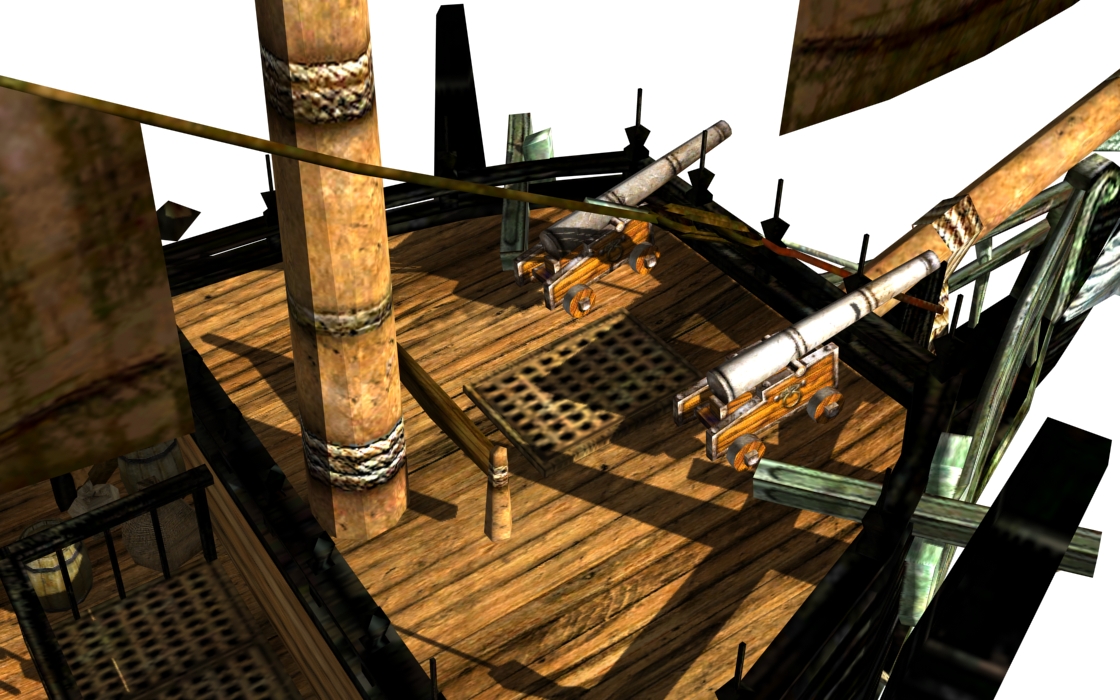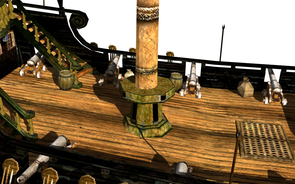 You've probably already noticed, but all guns have been shortened and are now black, and with touch-holes. Since I've seen people complaining about it, I've changed the texture coordinates on the cannons, so it's should be compatible with other cannon texture mods.
